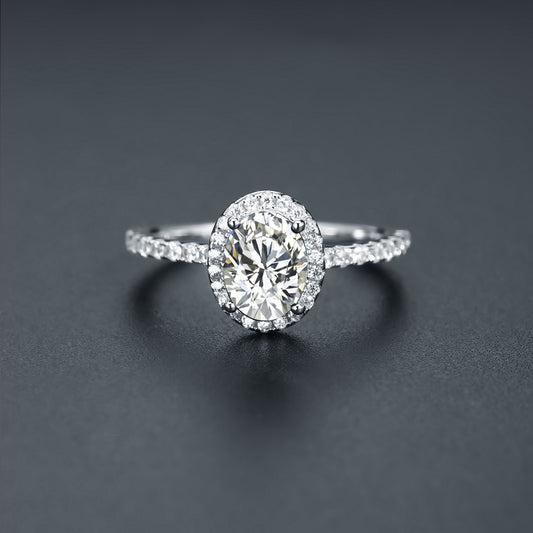 Oval Cut Halo 1.00ct Moissanite Engagement Ring Set in Sterling Silver - BLACKFRIDAY
