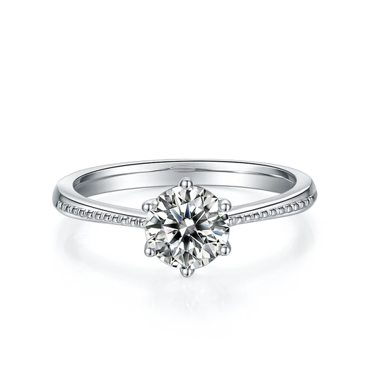Milgrain Solitaire 6 Claw Setting 1.00ct Moissanite Engagement Ring Set in Sterling Silver - BLACKFRIDAY