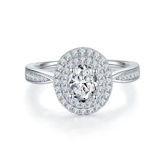 Double Halo 1.00ct Oval Cut Moissanite Engagement Ring - BLACKFRIDAY