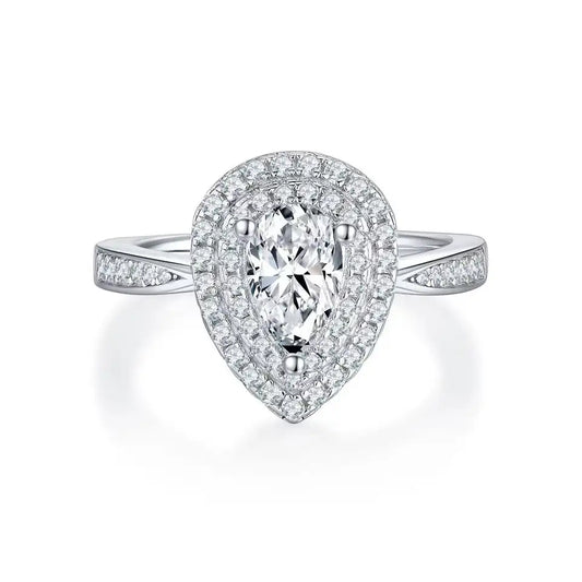 Double Halo 1.00ct Pear Shape Moissanite Engagement Ring - BLACKFRIDAY