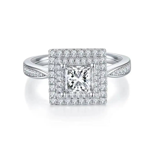 Double Halo 1.00ct Princess Cut Moissanite Engagement Ring - BLACKFRIDAY