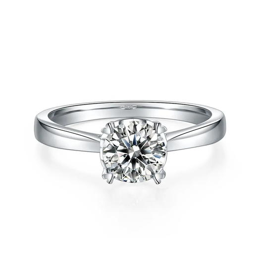 Classic Solitaire 4 Heart Shaped Claws 1.00ct Moissanite Engagement Ring Set in Sterling Silver