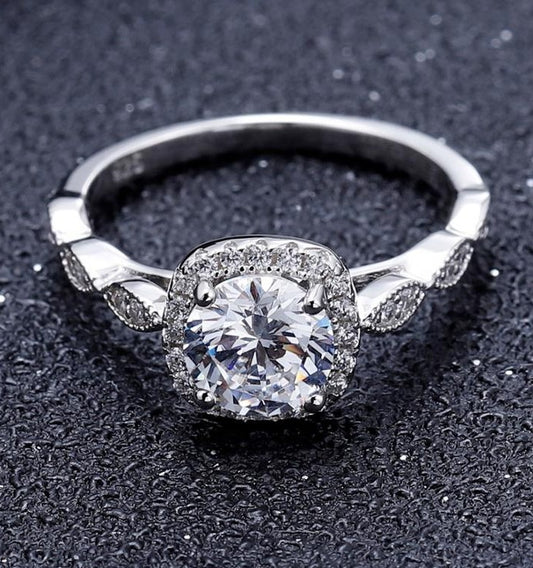 Vintage Halo 1.00ct Moissanite Engagement Ring Set in Sterling Silver