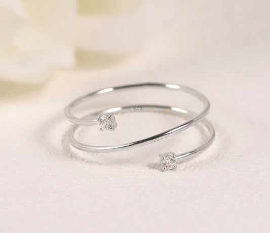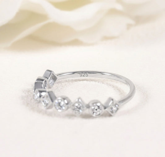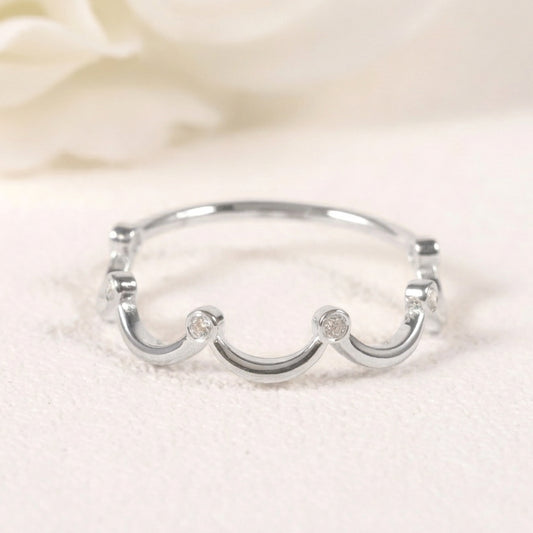 Dainty Sterling Silver Moissanite Wavy Bezel Set Open Heart Stacking Ring