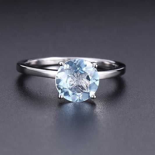 Exquisite Blue Topaz Ring - Round Brilliant Cut