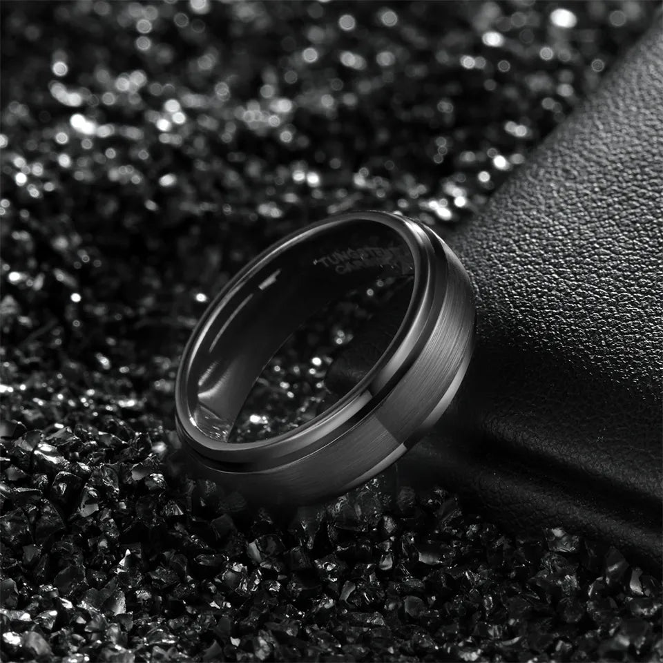 All Black Tungsten Ring With Polished & Brushed Finish