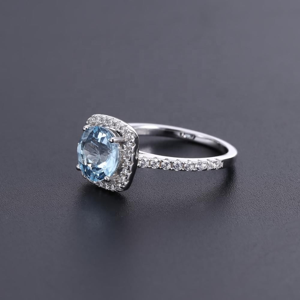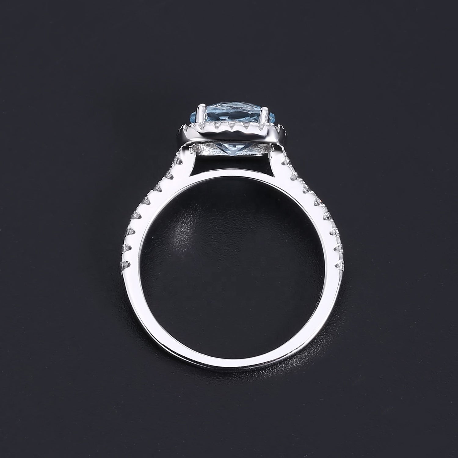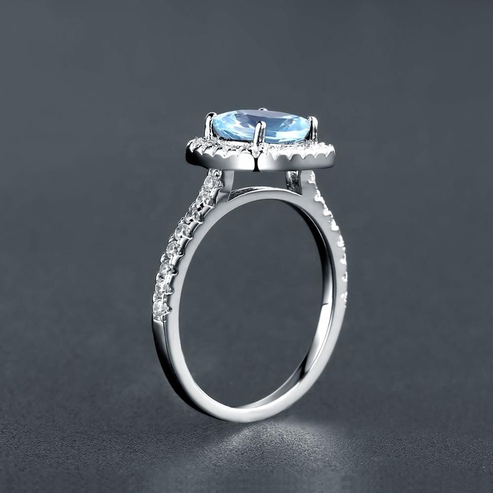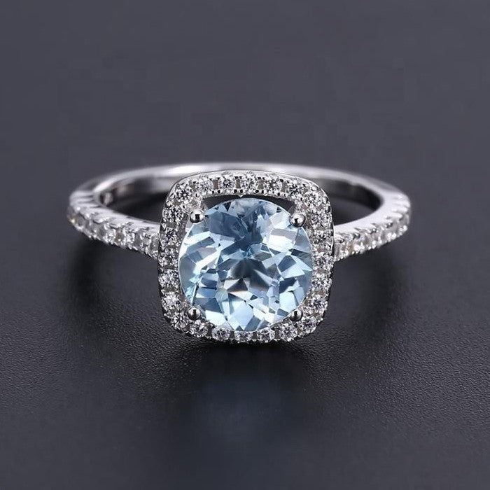 Classic Blue Topaz Halo Ring - Round Brilliant Cut