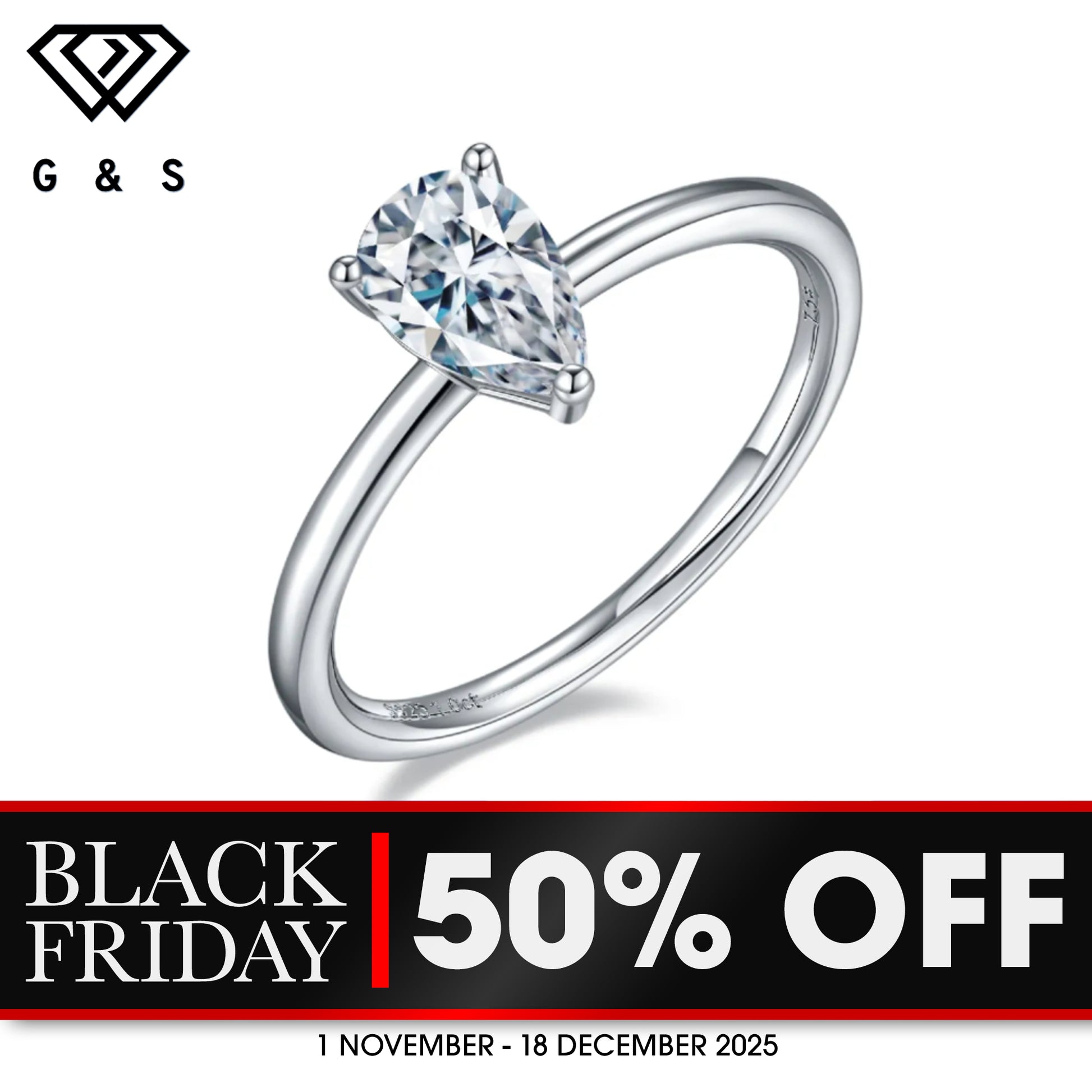 Classic Claw Pear Shape Solitaire 1.00ct Moissanite Engagement Ring Set in Sterling Silver - BLACKFRIDAY