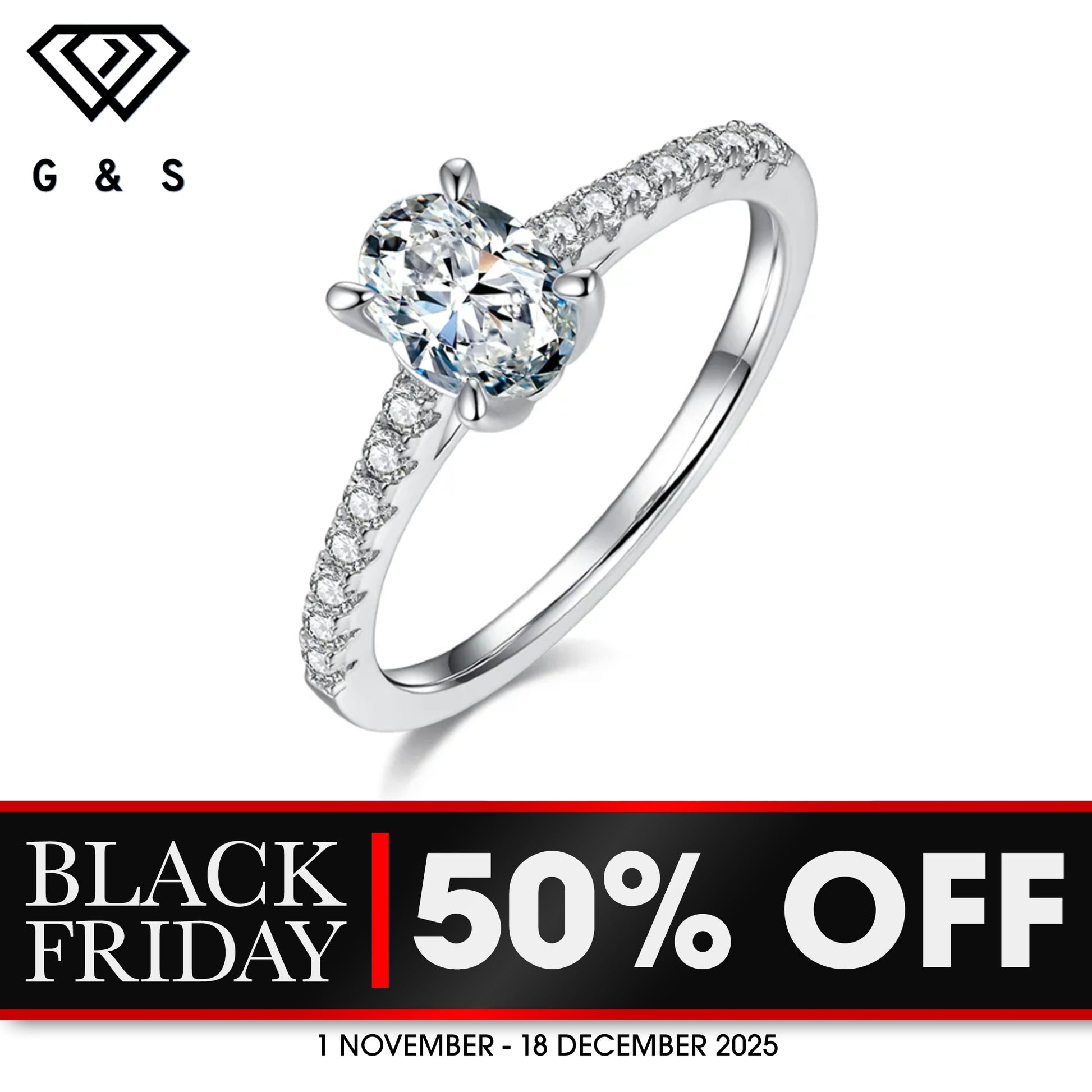 - Center Moissanite: Oval Cut 1.00ct (7mm x 5mm)