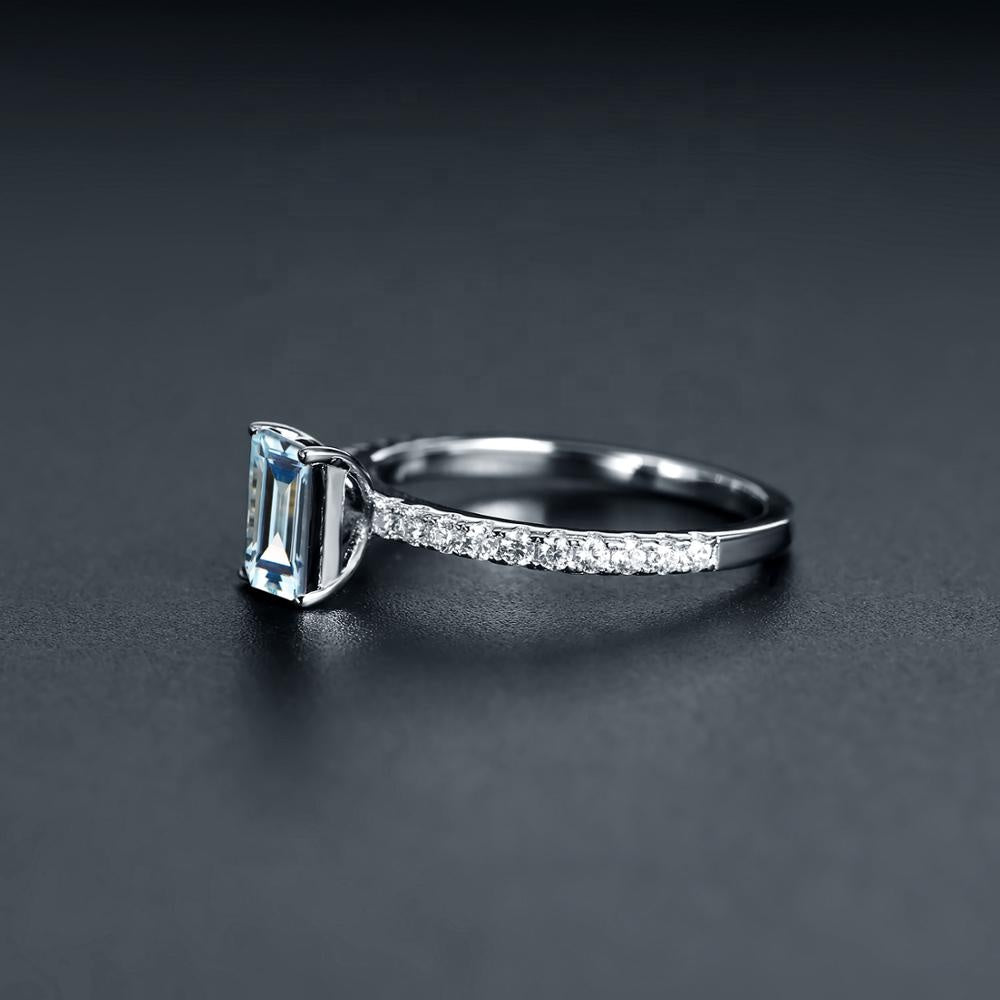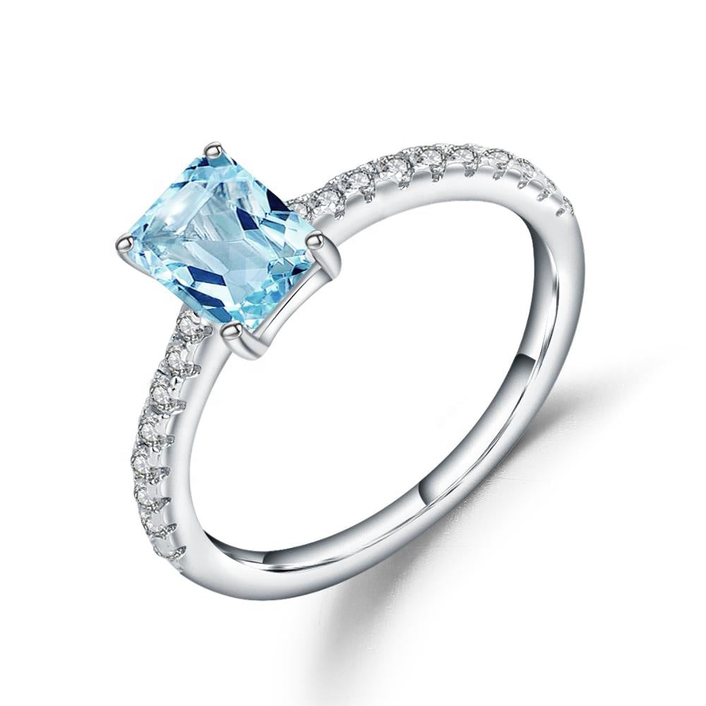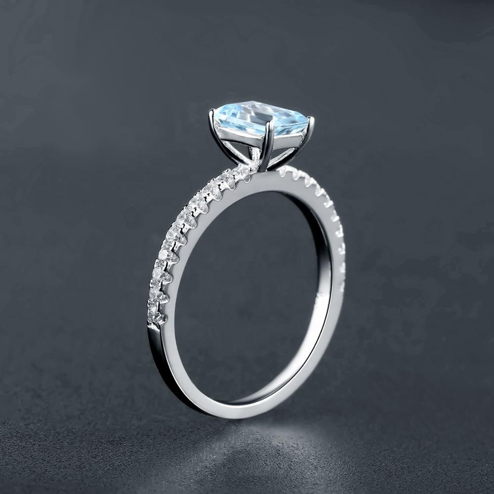 Exquisite Blue Topaz Ring - Emerald Cut