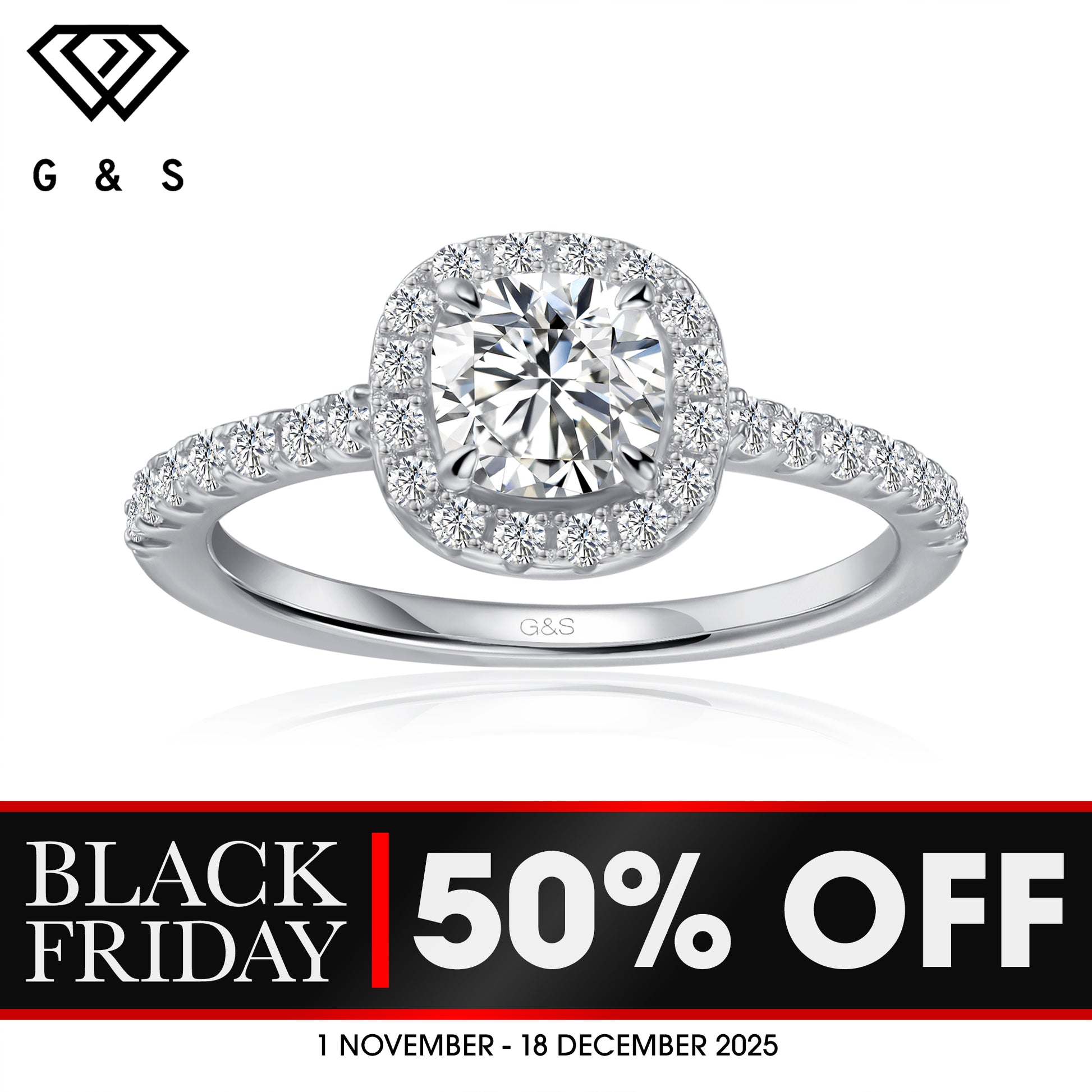 Forever Classic Halo Cushion Cut Moissanite Engagement Ring - BLACKFRIDAY