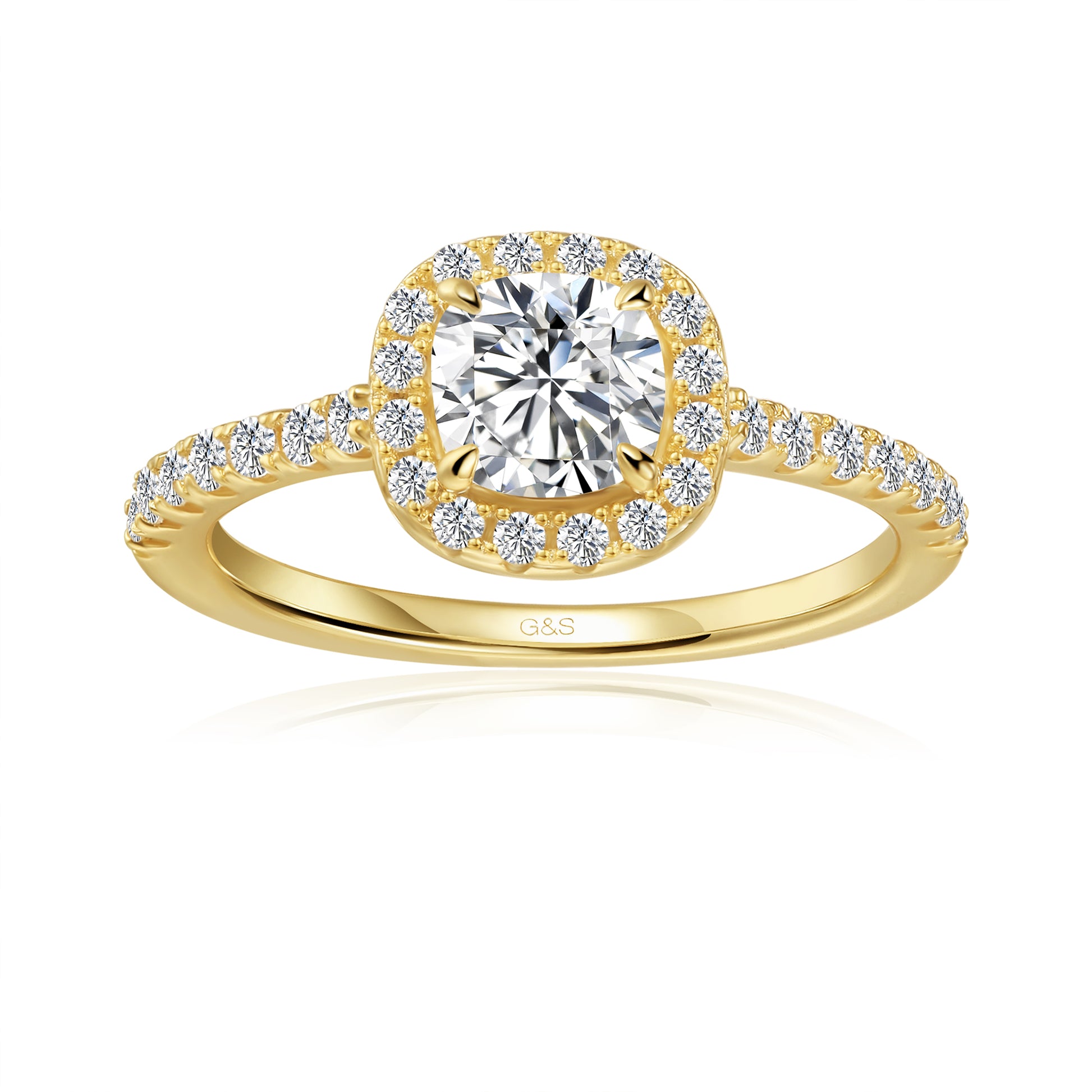 - Center Moissanite: Cushion Cut 0.80ct (5.5mm)