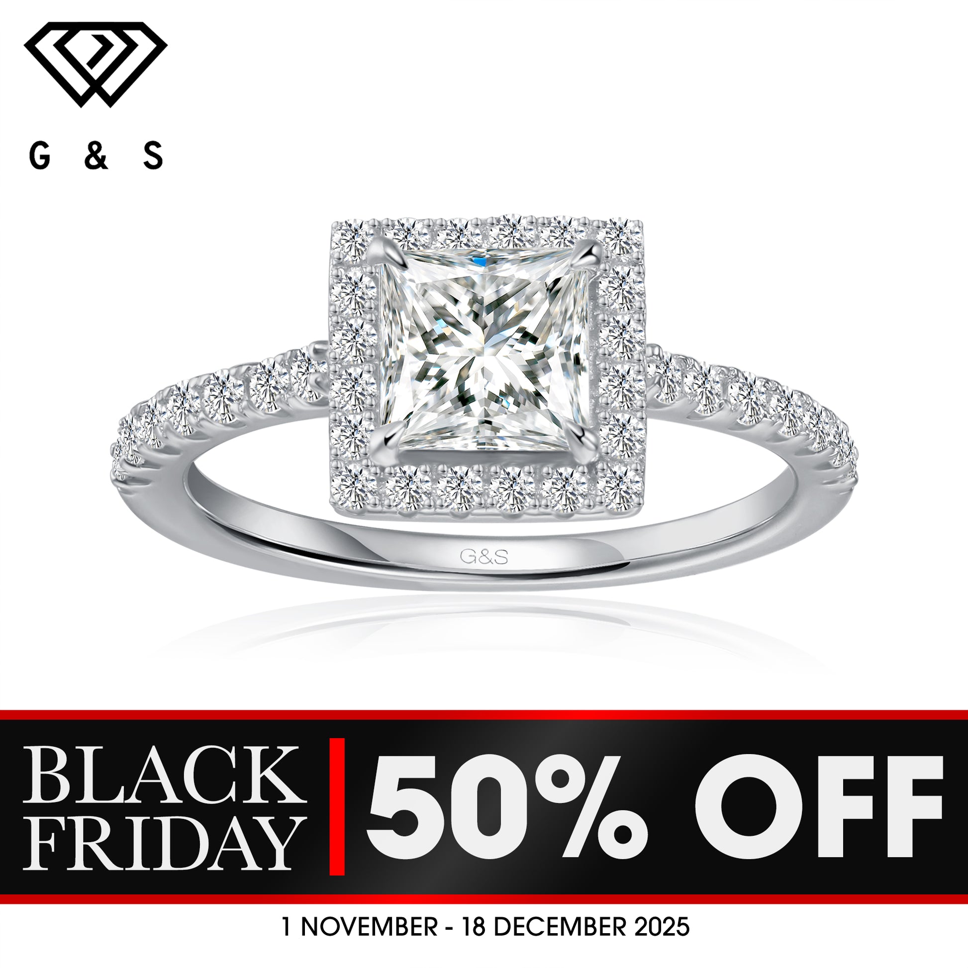 Forever Classic Halo Princess Cut Moissanite Engagement Ring - BLACKFRIDAY