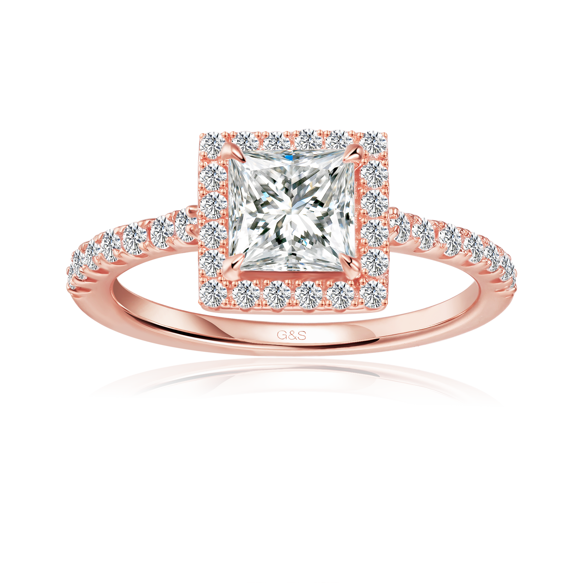 - Center Moissanite: Princess Cut 1.00ct (5.5mm)