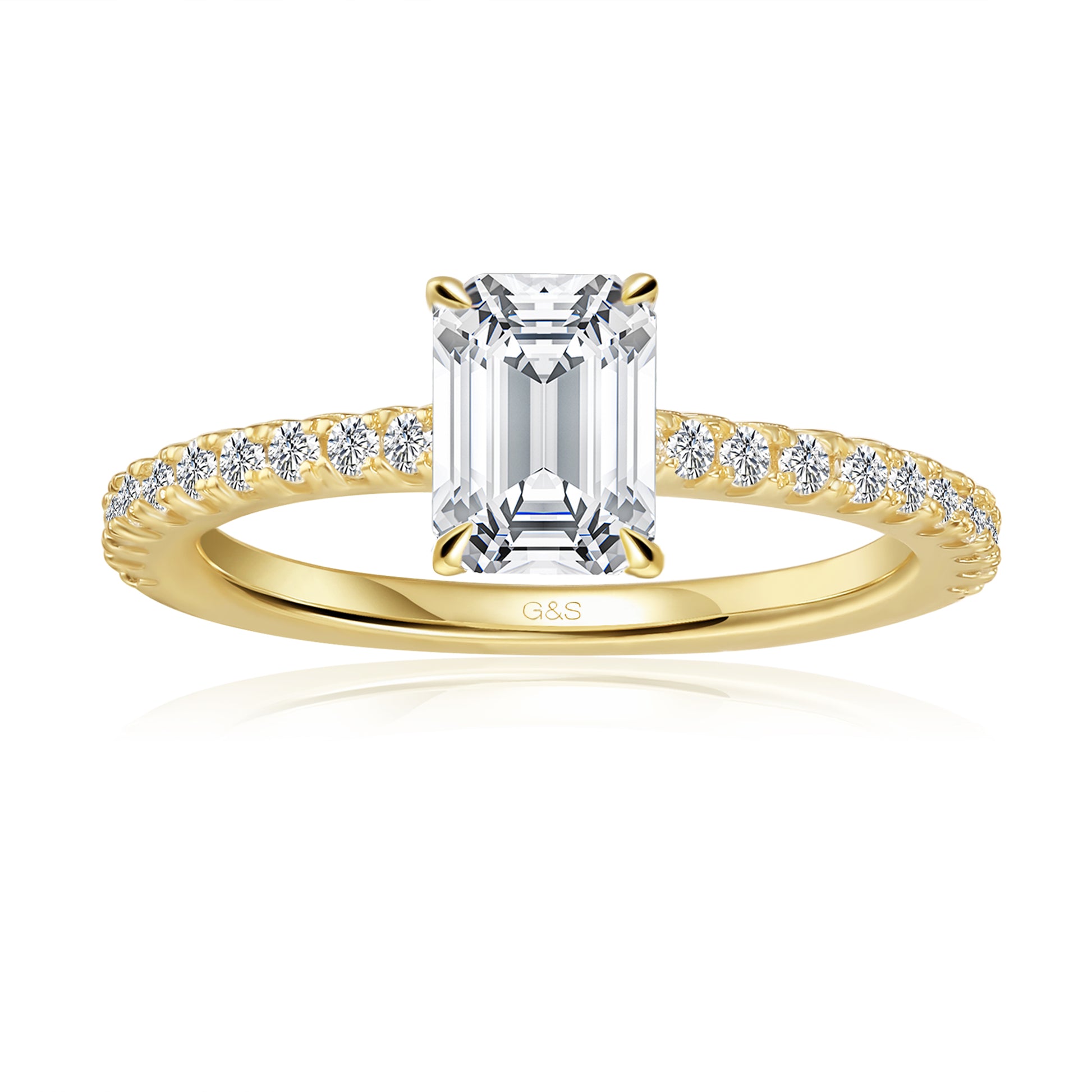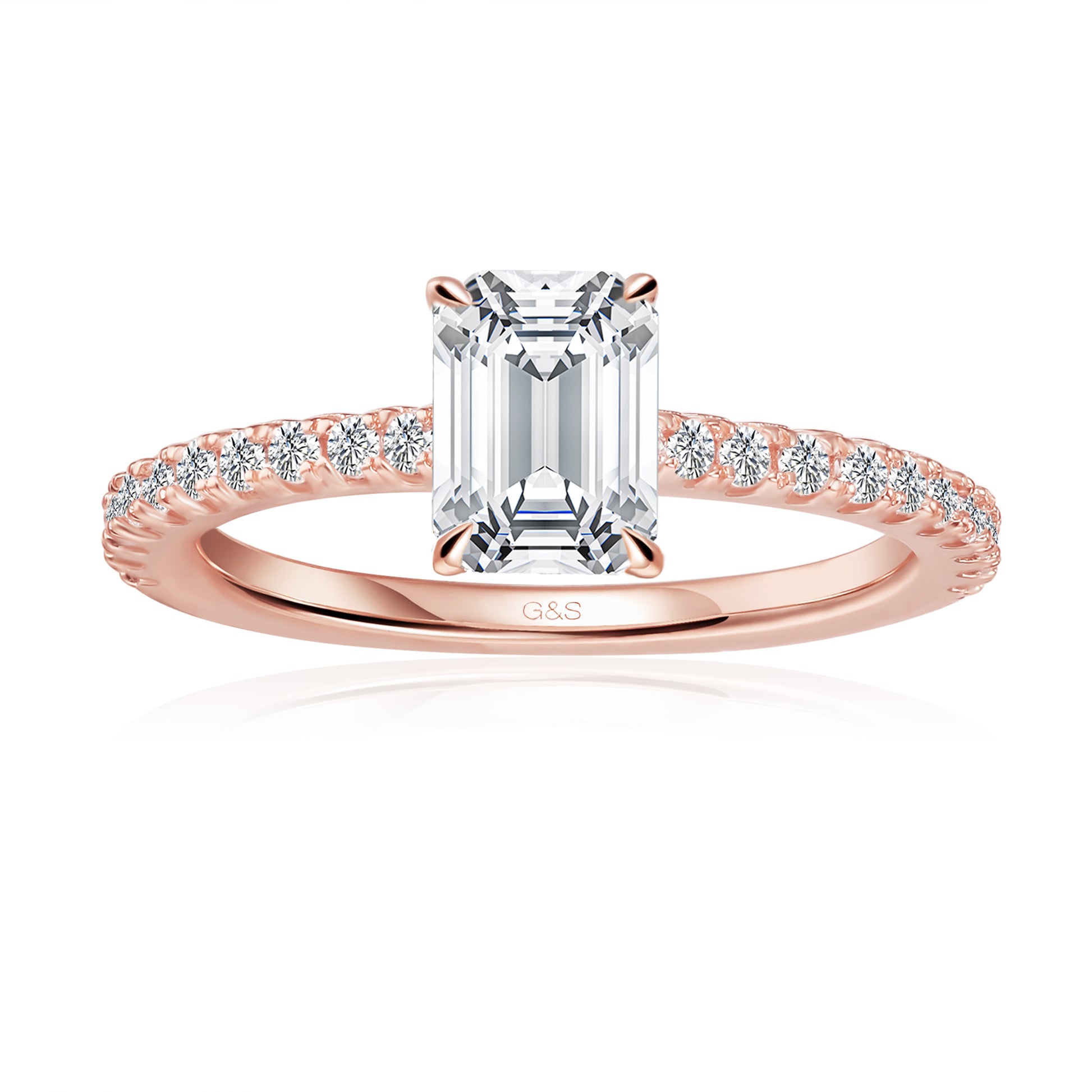 - Center Moissanite: Emerald Cut 1.00ct (7mm x 5mm)