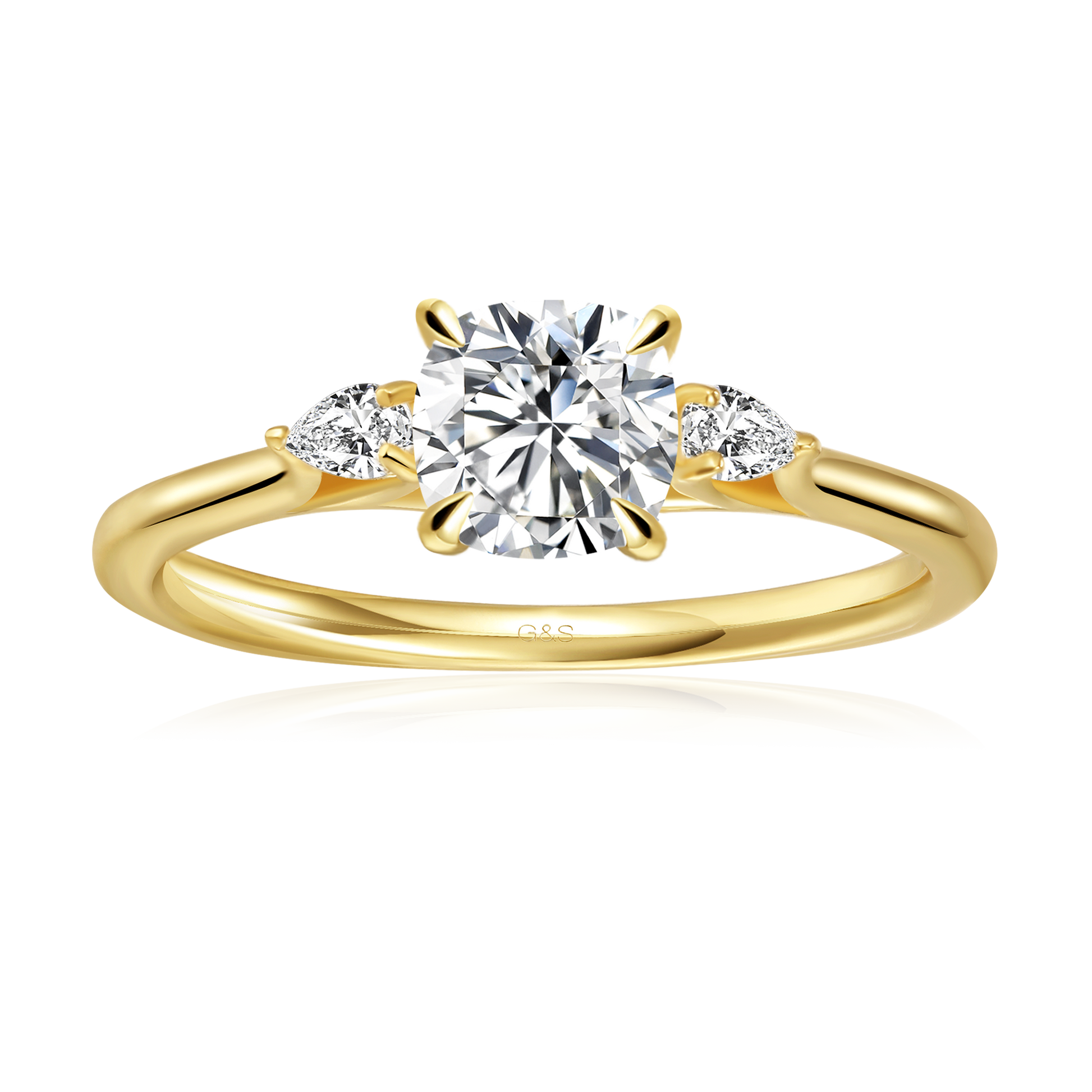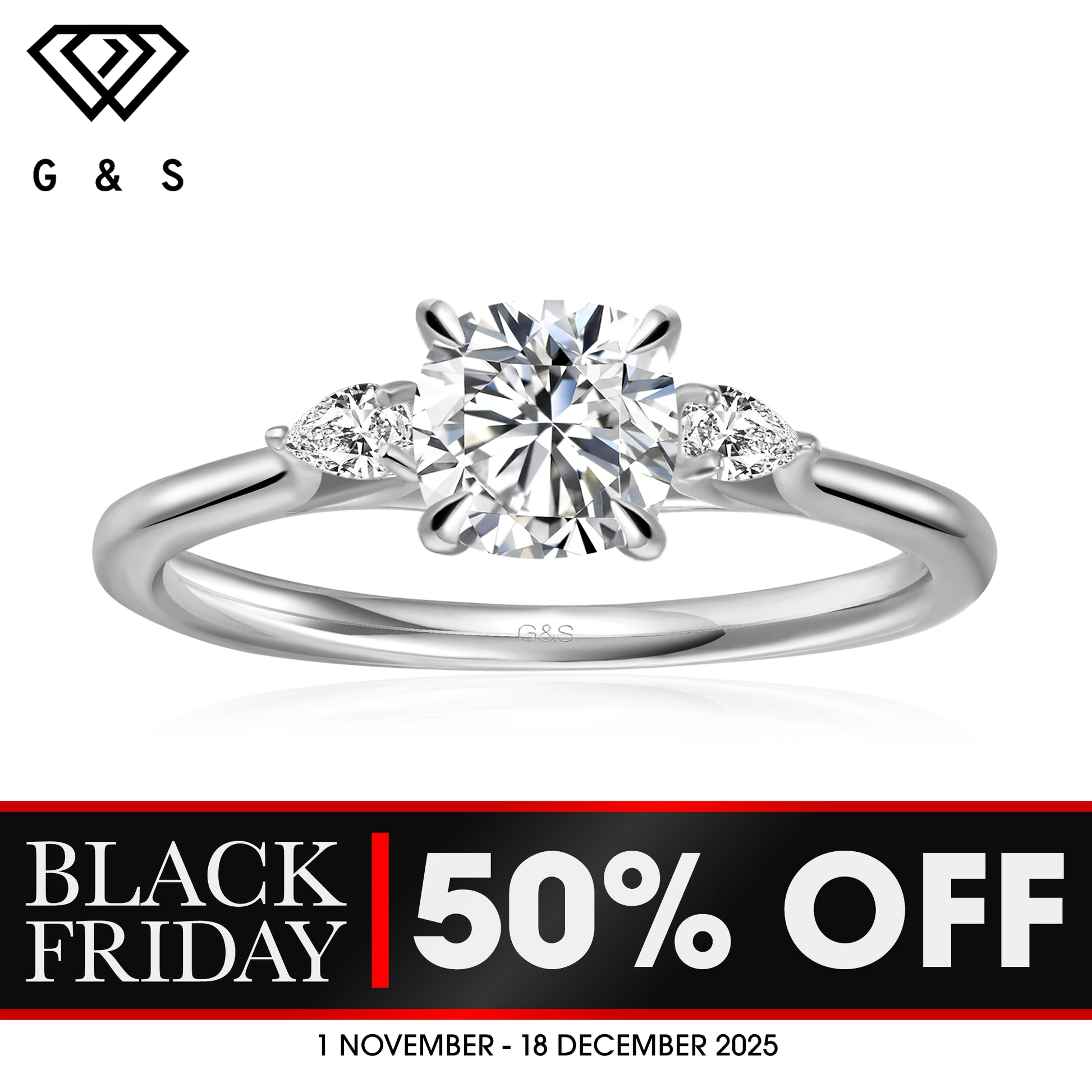 - Side Stones: Round Brilliant Moissanite (D - Colour)(VVS - Clarity)