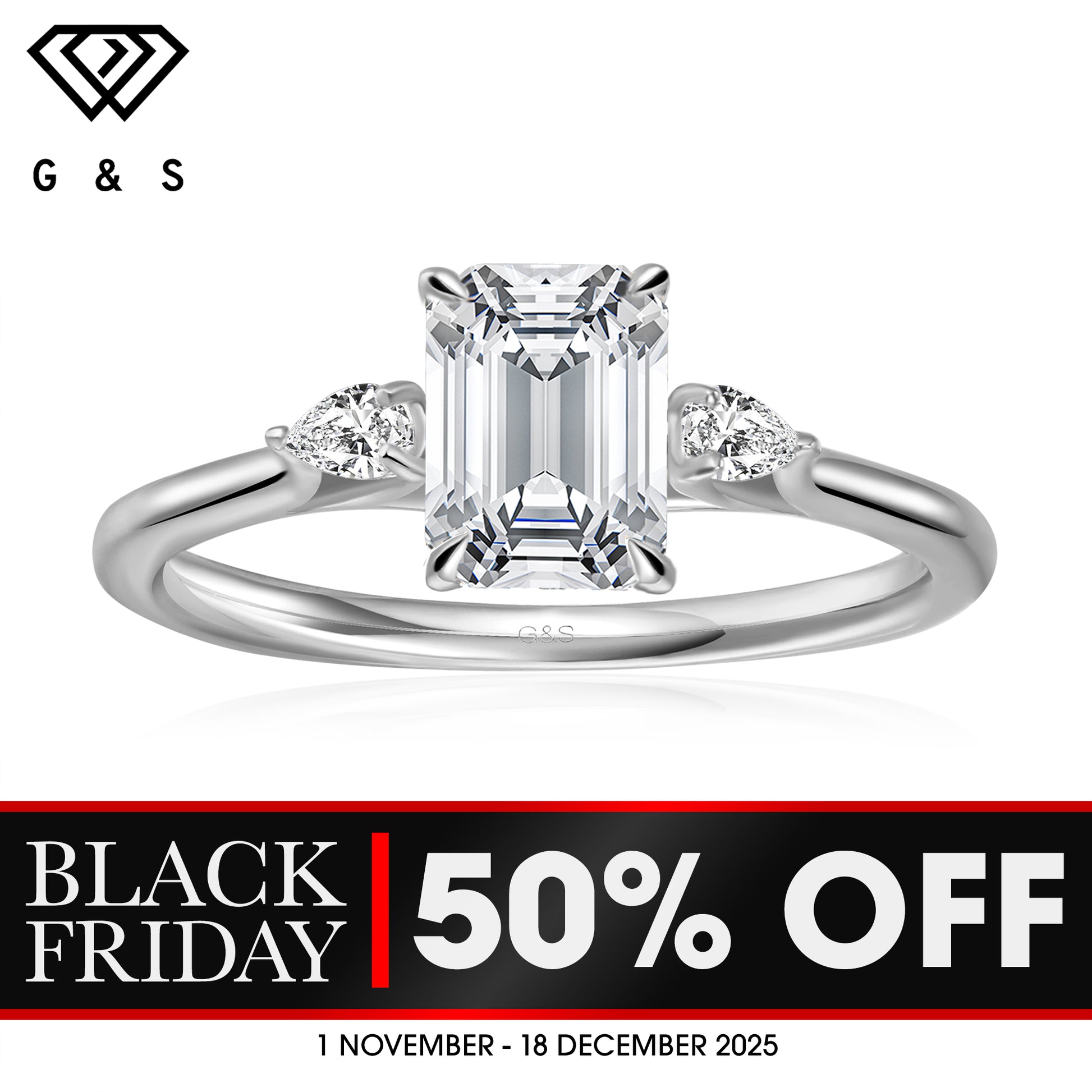 Infinite Love Trilogy Emerald Cut Moissanite Engagement Ring - BLACKFRIDAY