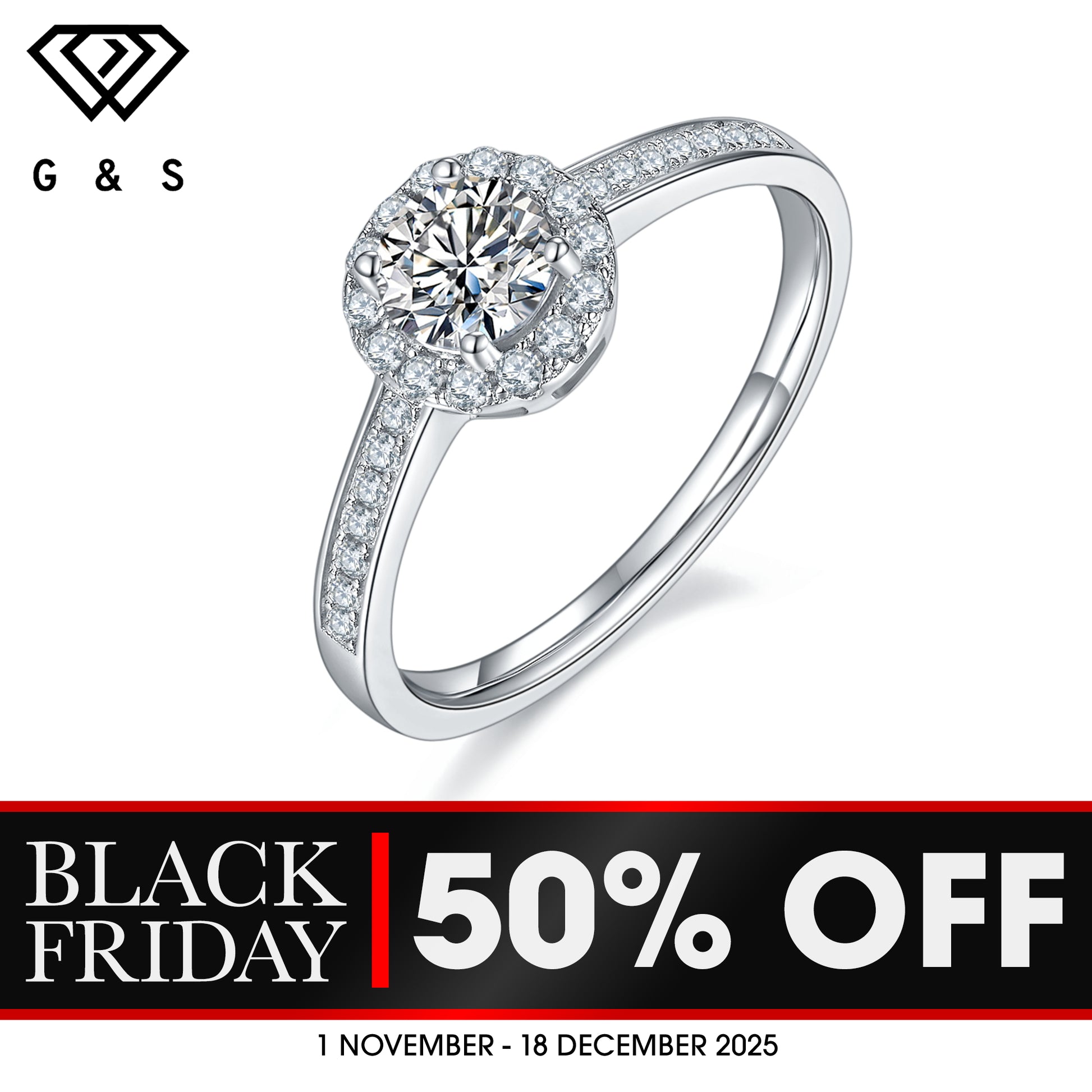 Pave Halo 0.50ct Moissanite Engagement Ring Set in Sterling Silver - BLACKFRIDAY