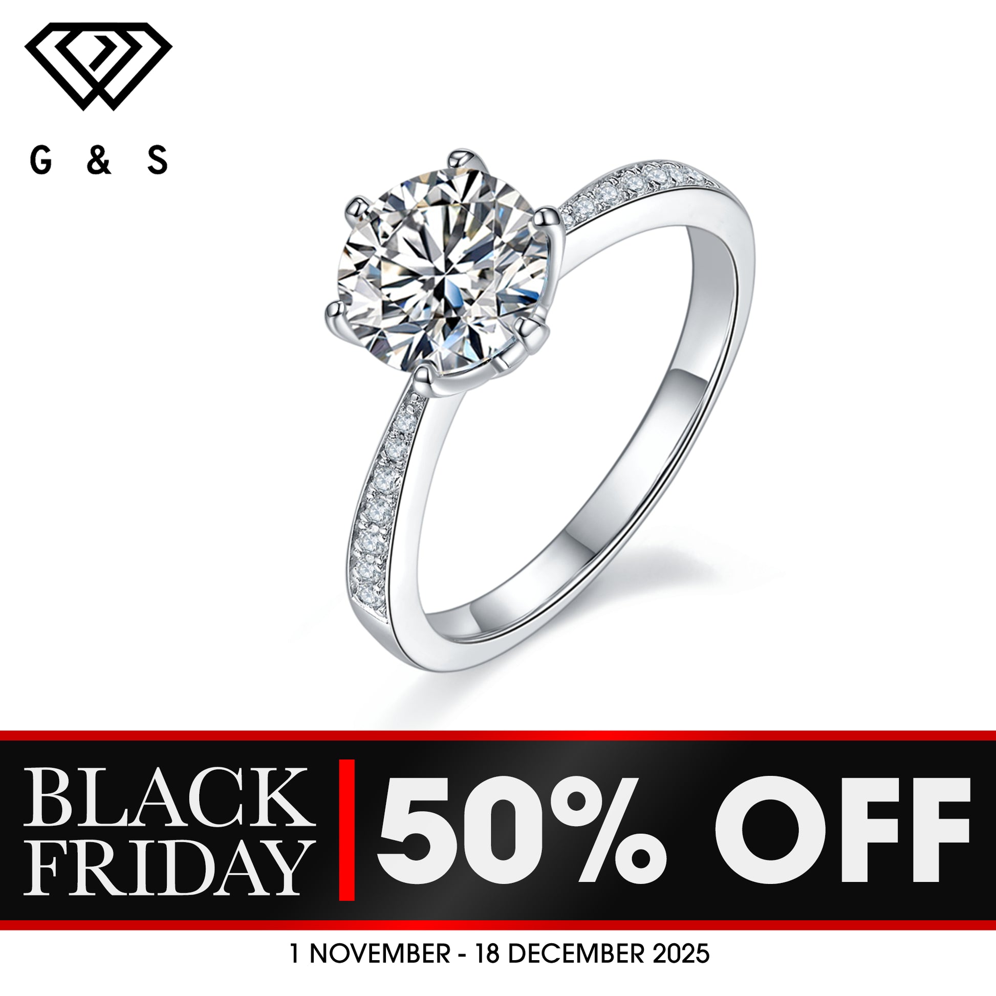 Pave Tiffany 6 Claw Setting 1.50ct Moissanite Engagement Ring Set in Sterling Silver - BLACKFRIDAY