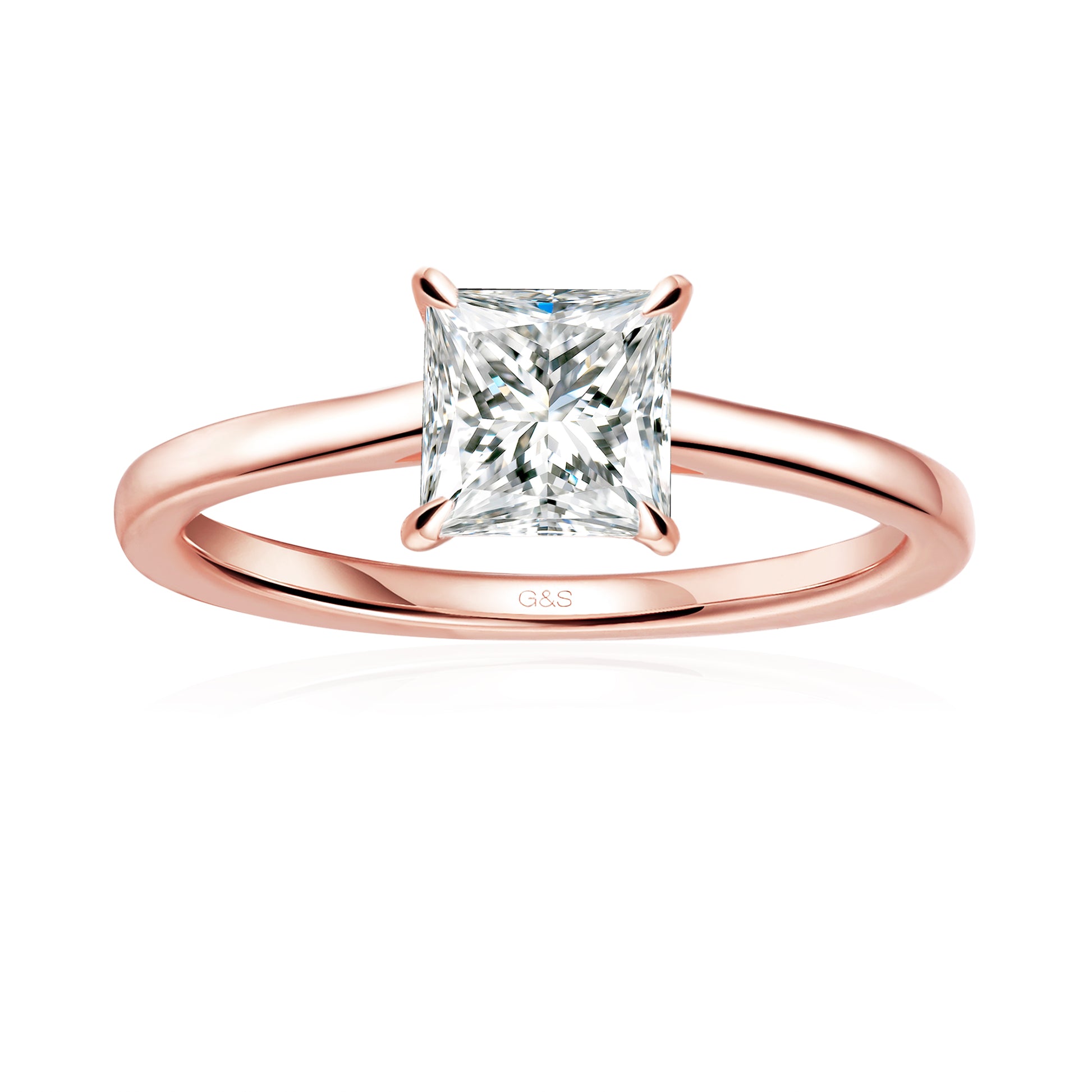- Center Moissanite: Princess Cut 1.00ct (5.5mm)