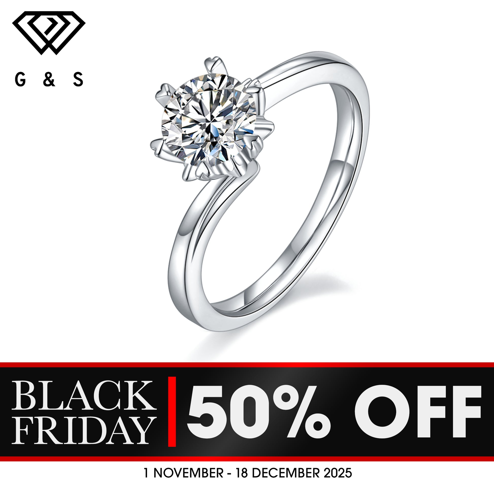 Snowflake Solitaire 6 Claws 1.00ct Moissanite Engagement Ring Set in Sterling Silver - BLACKFRIDAY