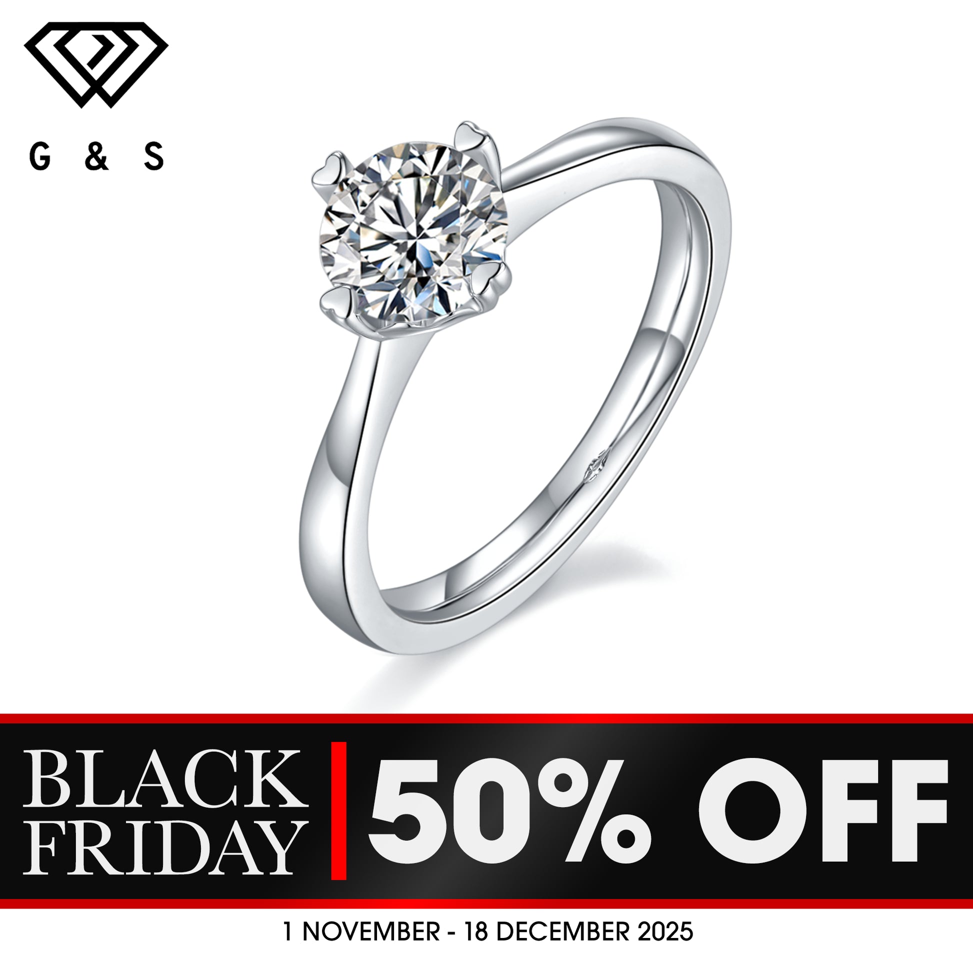 Solitaire 4 Heart Shaped Claws 1.00ct Moissanite Engagement Ring Set in Sterling Silver - BLACKFRIDAY