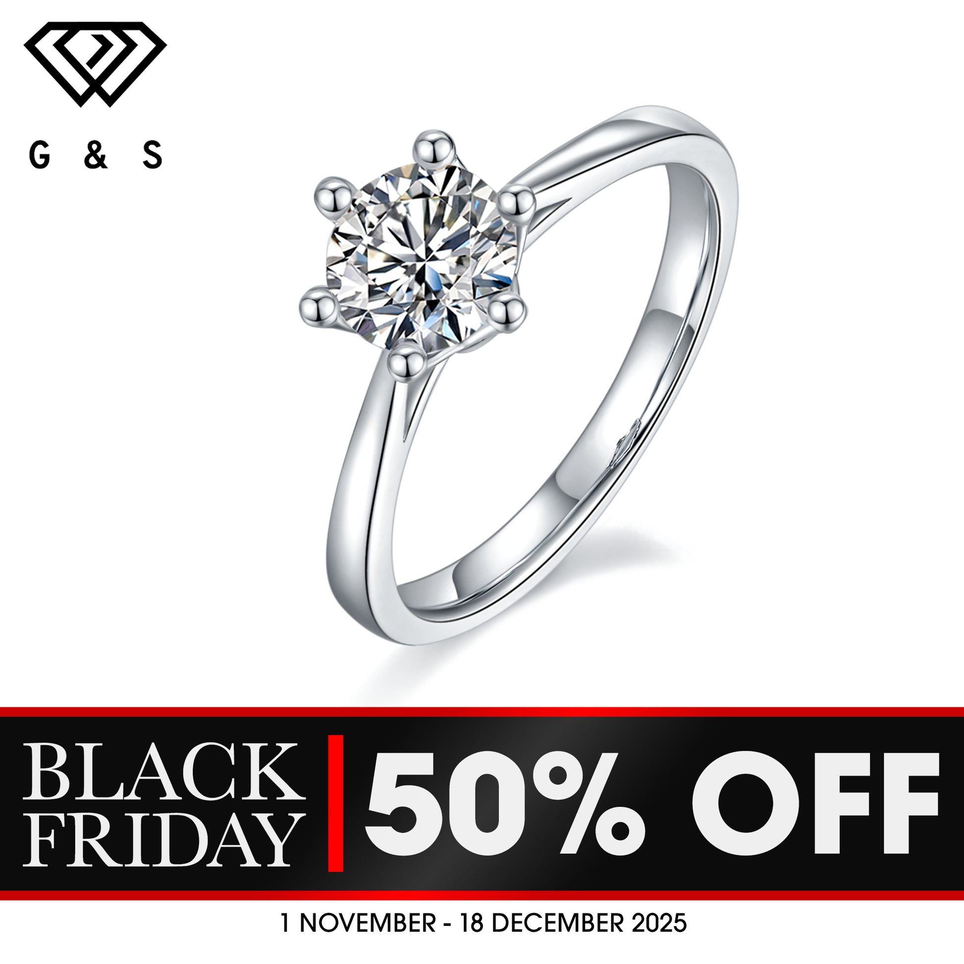 Solitaire 6 Claw Floral Basket 1.00ct Moissanite Engagement Ring Set in Sterling Silver - BLACKFRIDAY